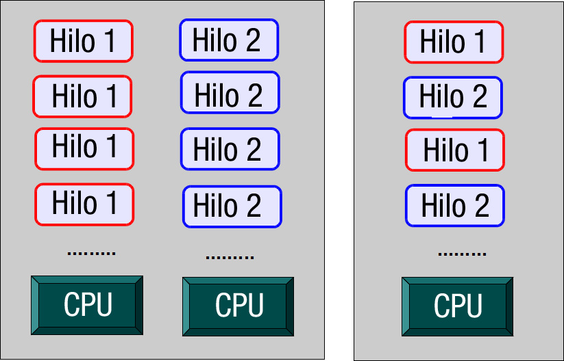 - Pseudoparalelismo. Si no es posible el paralelismo, una CPU es responsable de ejecutar múltiples hilos.