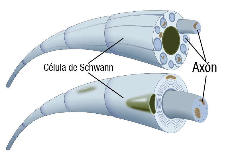 La mielina son células que están enrolladas alrededor del axón para que la conducción nerviosa sea mayor y más rápida.